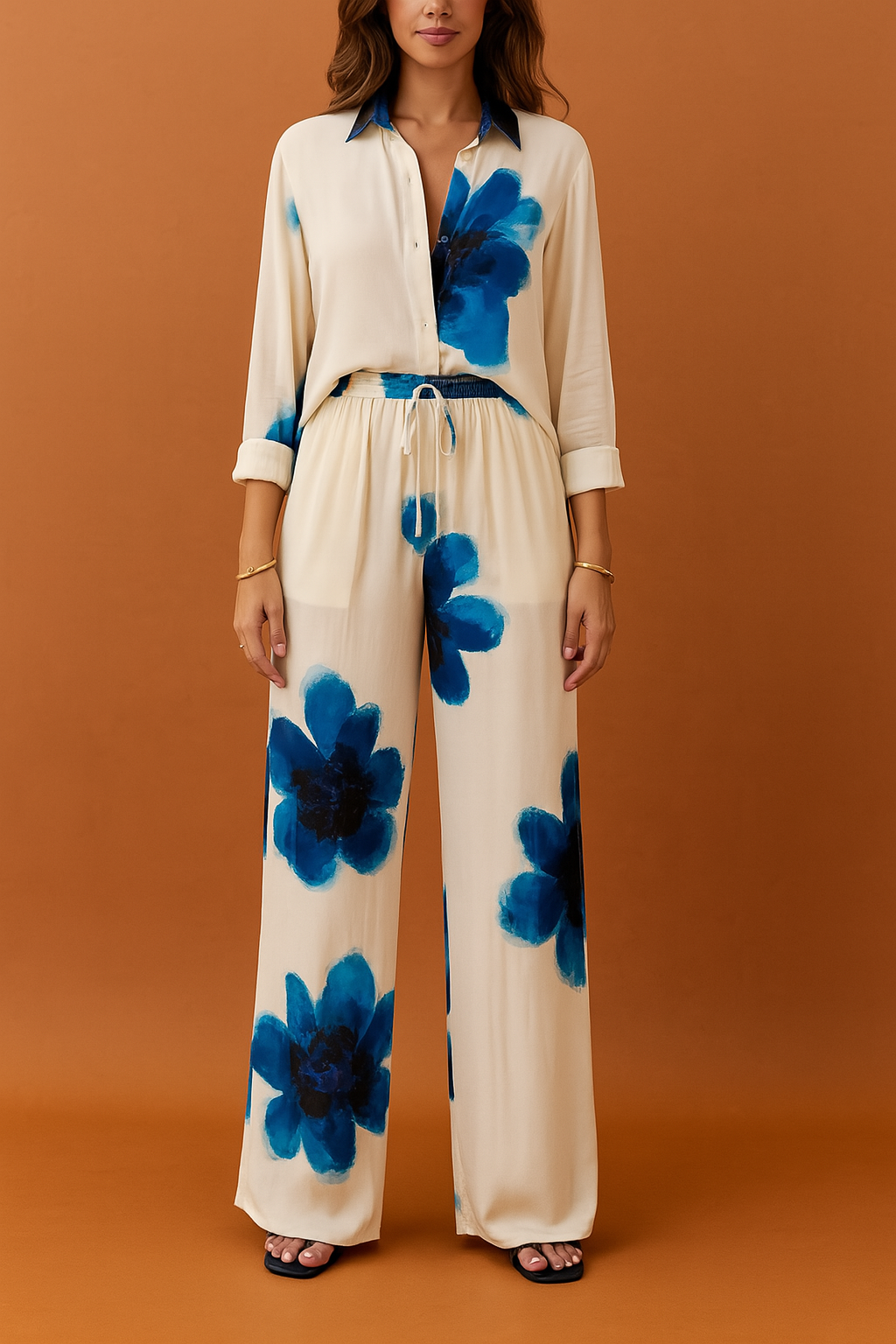 Fiore Set | Dwuczęściowy zestaw z koszulą i prostymi spodniami