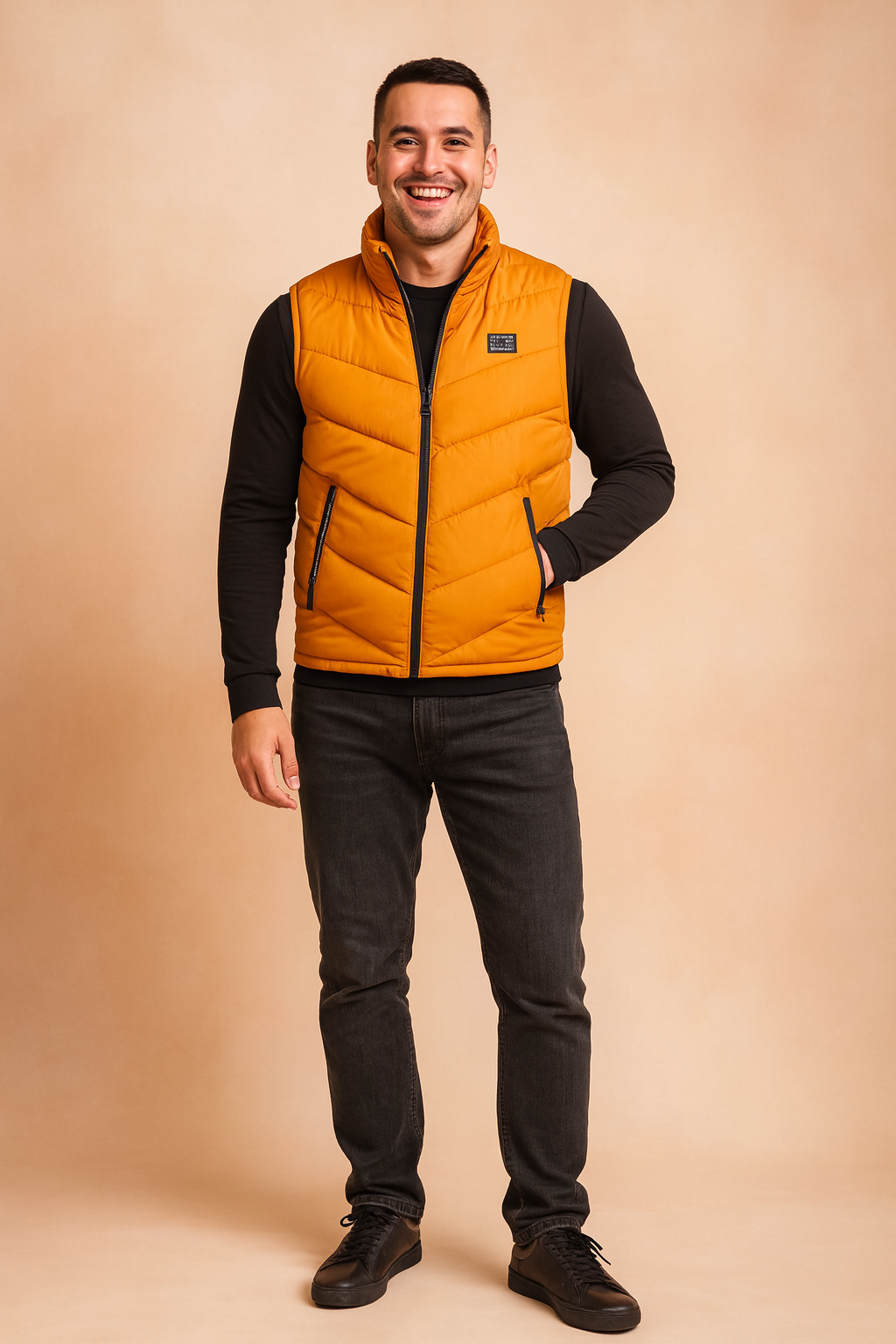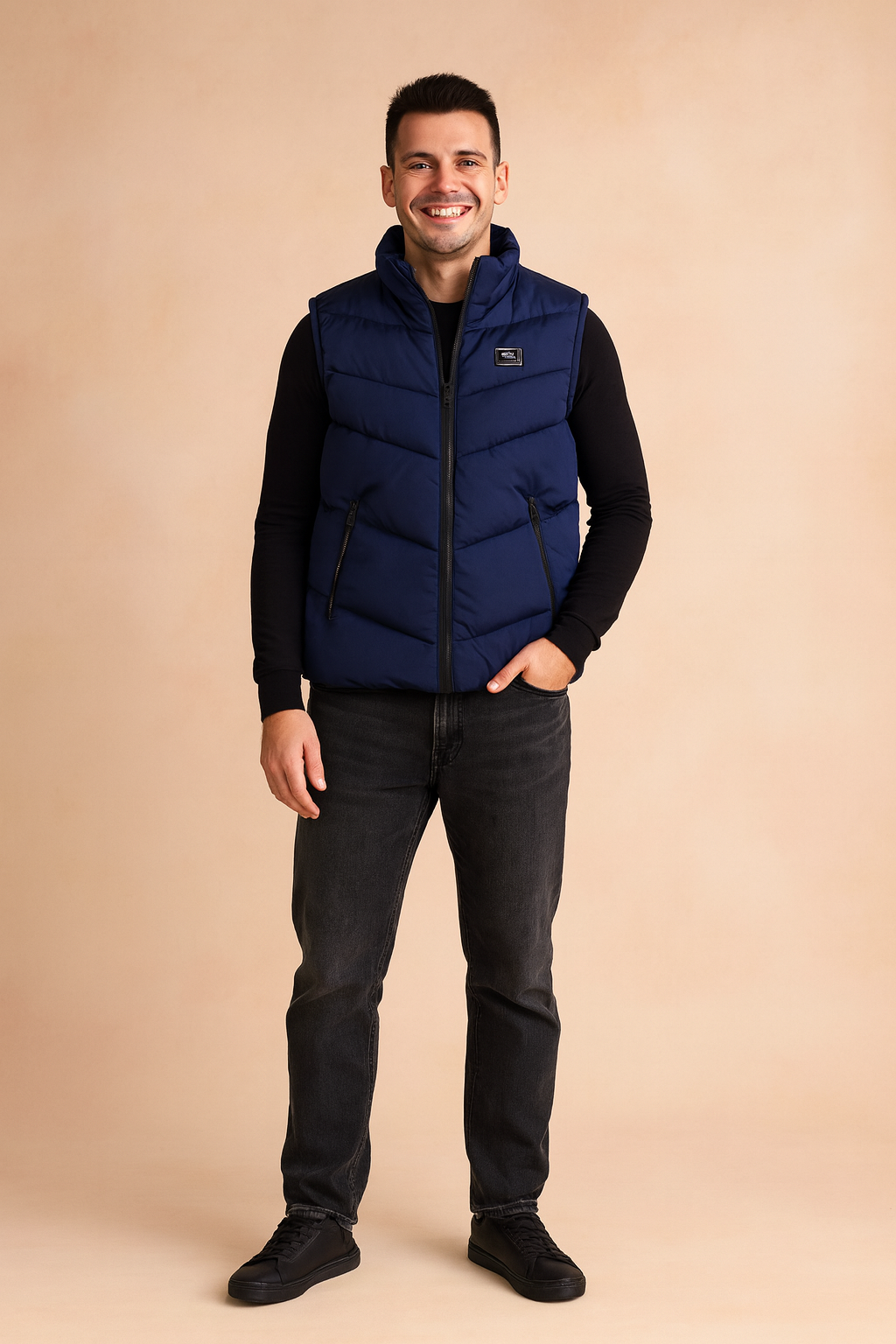 Ta męska kamizelka oferuje lekką ochronę i wygodę w zmiennej pogodzie. Jej minimalistyczny design sprawia, że łatwo dopasujesz ją do różnych stylizacji.