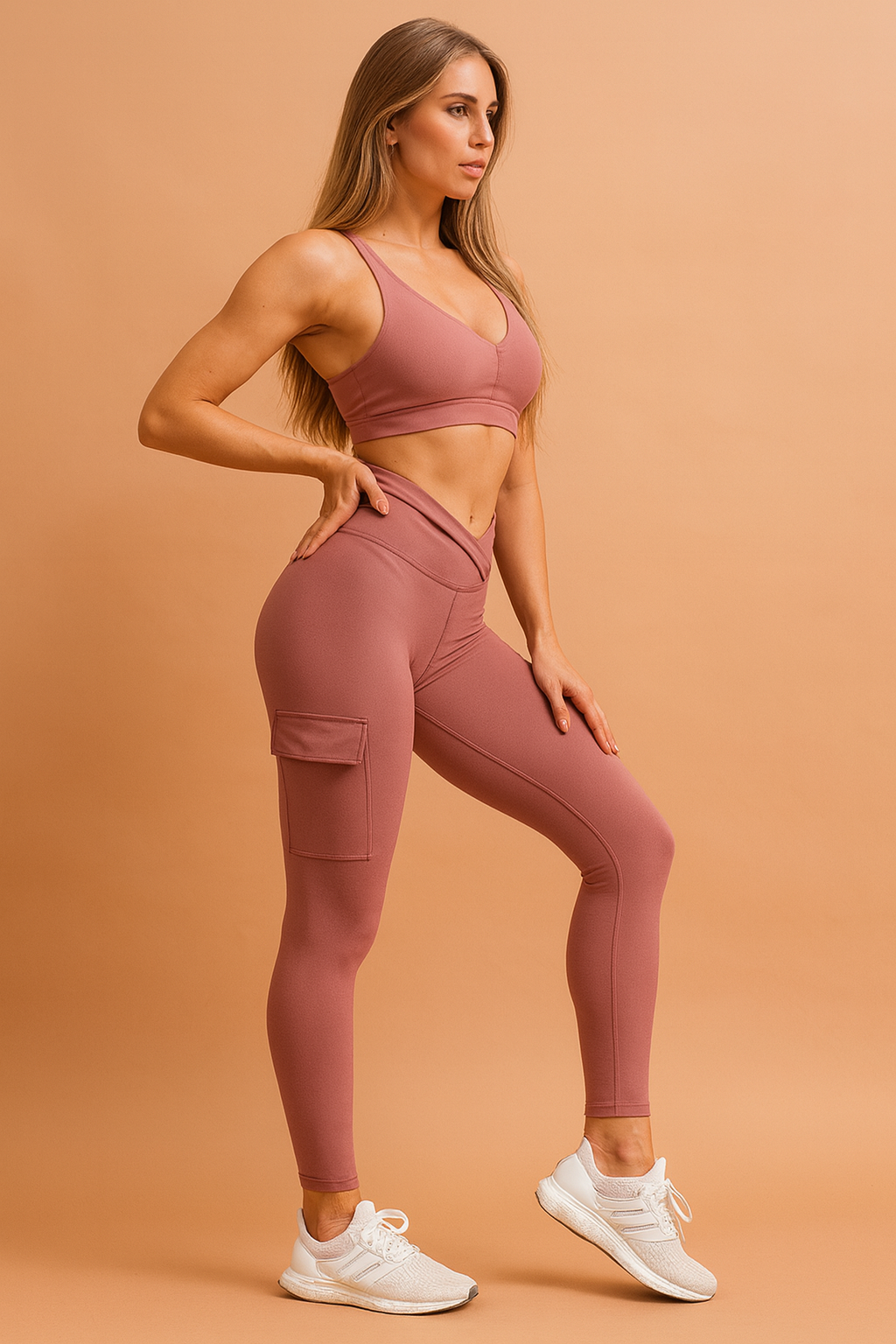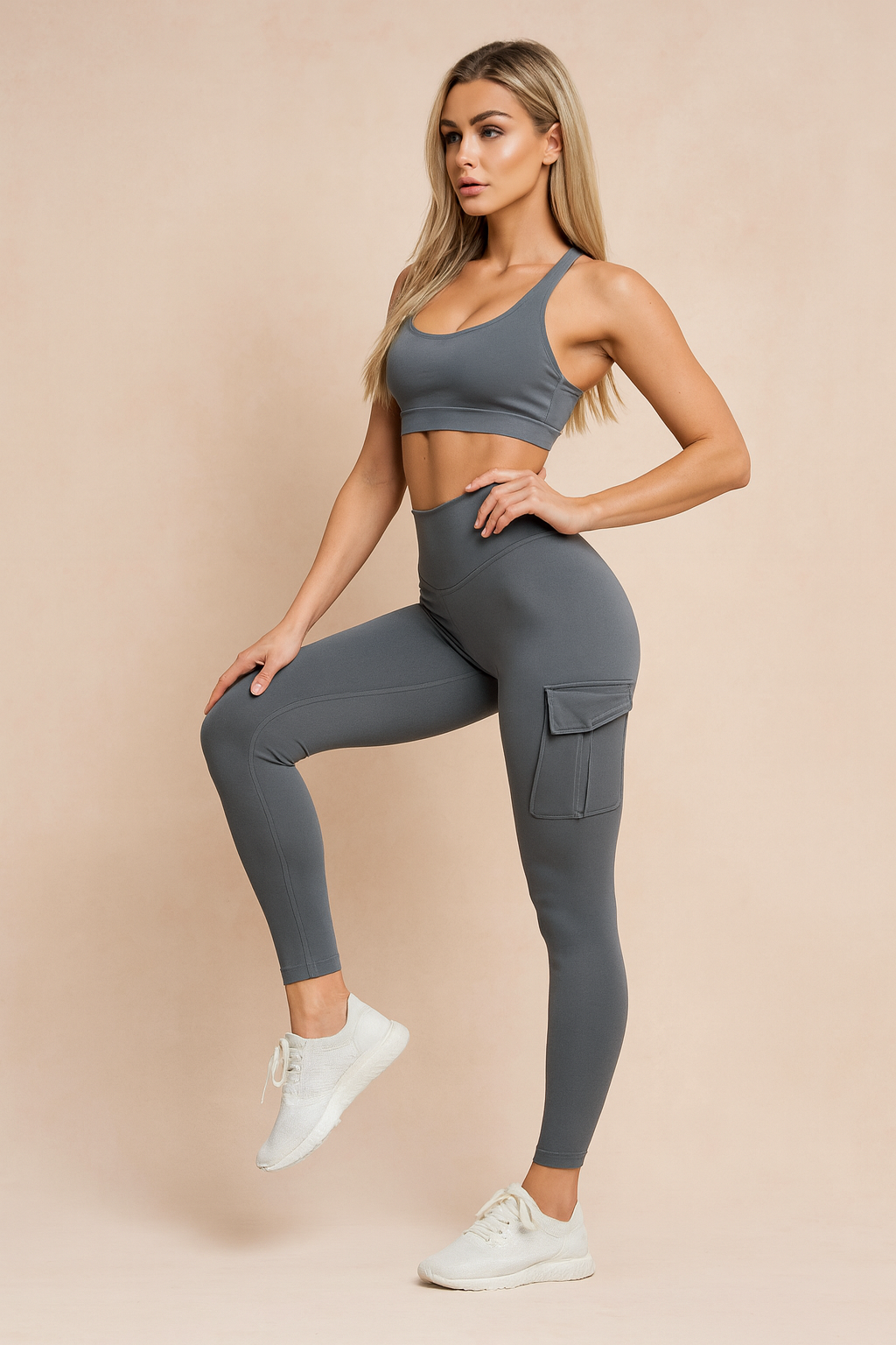 Boczna kieszeń cargo pozwala wygodnie przechowywać drobne akcesoria. To idealny wybór na siłownię, jogging czy codzienną aktywność.