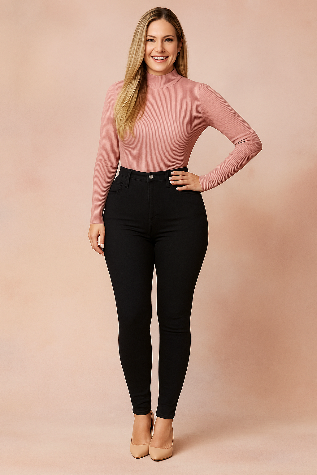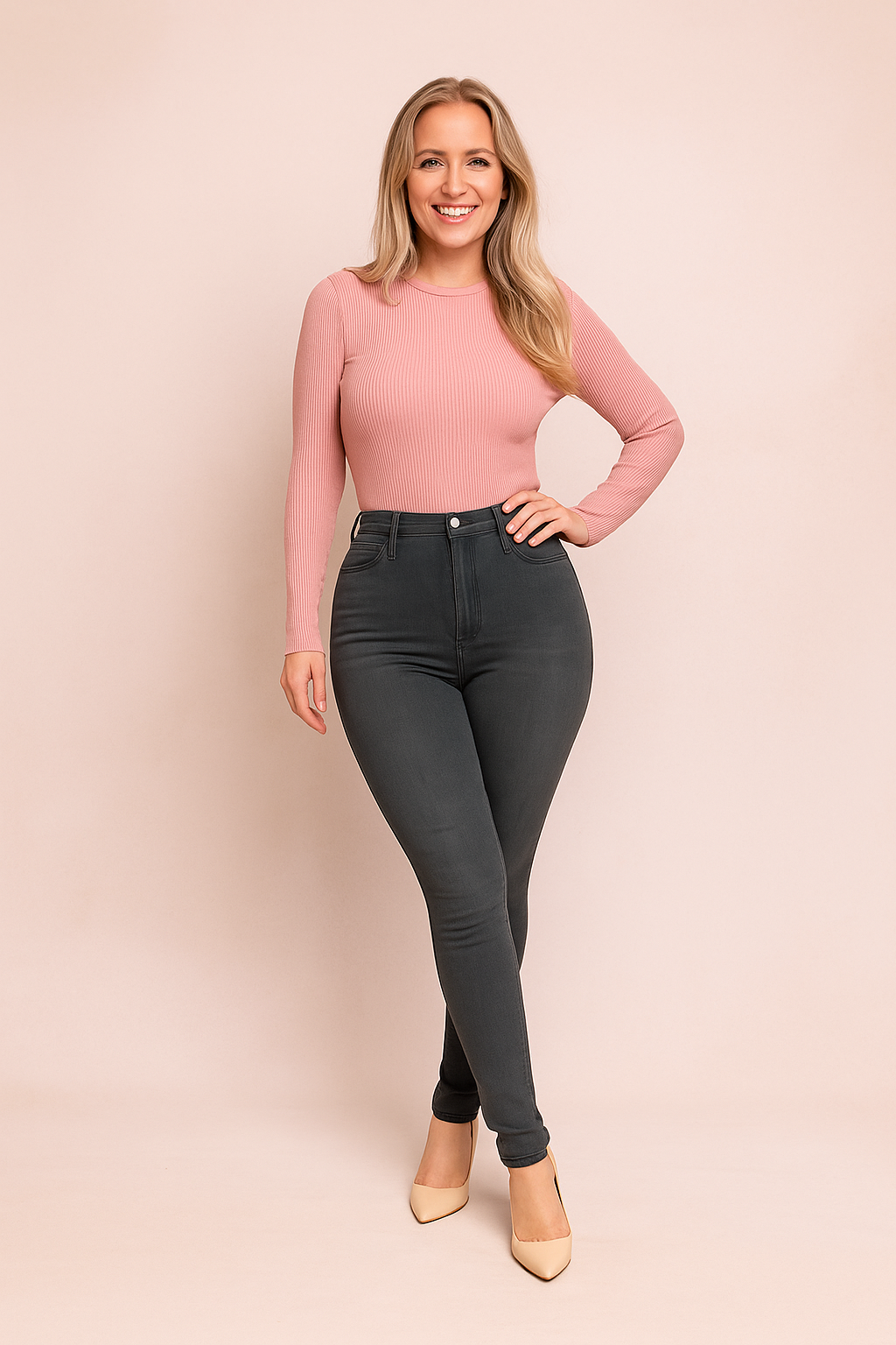 Wysoki stan: Podkreśla sylwetkę i zapewnia wygodne dopasowanie.