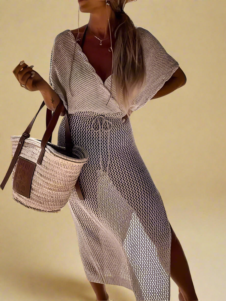 Nelia | Ażurowa sukienka plażowa z kopertowym dekoltem